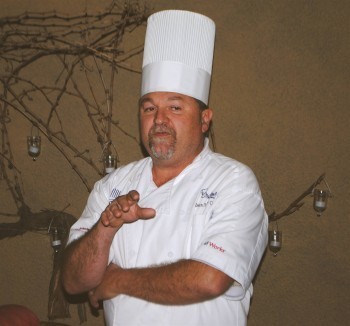 And finally the grand finale: white chocolate and passion fruit mousse (making it a double whammy aphrodisiac) on a pomegranate and banana brûlée. This creamy dessert was full of subtle fruit flavors that combined to make it a unique and delectable dessert. (My friend, Linda Milks, loved it so much that she promises to try it herself at home and I plan to be there when that happens). Aromatic C’est La Vie’s Late Harvest Vin Blanc was the perfect match with hints of pear and vanilla on the palate.