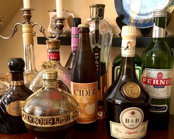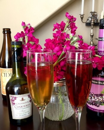 James has a marvelous section on cider cocktail recipes in the book. And, since this is a cocktail column, I thought about what kind of cocktails I could make using this fast growing popular beverage. Although some “still” non-carbonated cider is produced, most cider is bubbly. One of my long-time favorite cocktails is Champagne or sparkling wine splashed with a liqueur. I am especially fond of the French cocktail Kir Royale, made with sparkling white wine and Crème de Cassis, a black currant liqueur. I had fun experimenting with cider and various liqueurs: Amaretto, B & B, Calvados, Limoncello, Goldschläger, Godiva, Chambord, St. Germain, Pernod, and Crème de Cassis. I was surprised how delightfully herbal and botanical the cider tasted with the addition of B & B or Pernod. Calvados, an apple brandy, enhanced and brightened the cider’s apple fruitiness, but also balanced its sweetness. You may want to experiment with your favorite liqueur. The recipe is simple. The cider must be cold, use only a splash or up to ½ oz. of liqueur (so as not to overwhelm the cider’s flavor profile), and serve the drink in a tapered glass to showcase the cider’s bubbles.