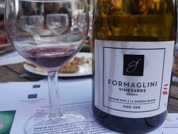 We then progressed to tasting four wonderful Formaglini Pinot Noirs, all produced from grapes nourished on the winery’s La Quercia Block, which is a four-acre, slopping vineyard sitting high on a hill in the heart of Willamette Valley. The enthralling aromas and flavors of these wines still linger with me.