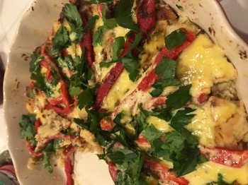 We sometimes start a wine tasting event with Prosecco, which can act almost like a palate cleanser, readying your palate for a variety of tastings to come. So we began this tasting with Bervini 1955 Prosecco Doc Millesimato Extra Dry that we primarily paired with a Spanish tortilla consisting of potatoes, onions, eggs and olive oil. I followed each bite of the tasty tortilla with a sip of Prosecco, which was definitely more flavorful after the bite of the tangy, salty tortilla. This is a good example of a high acid wine being enhanced by a salty dish, but this lovely Prosecco could also easily have been enjoyed without food. The Prosecco’s nose was fruity and its taste lemony with hints of pear, peach, and grapefruit. This nice bubbly typically retails for $18.99.