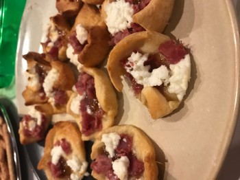 The N27 — New Zealand Sauvignon Blanc is crisp and light with tropical fruit flavors and a nice refreshing hint of lime. Because it is richer than most Sauv Blancs, it matched nicely with the richer ham and cheese sliders but also was enhanced by the goat cheese tart. At under $20, this wine is well priced for its impressive quality.