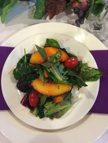 As we tasted wines, we sat down to a beautifully prepared dinner of mixed baby greens with rosemary marinated peaches, blackberries and heirloom tomatoes; marinated and grilled citrus herbed chicken breast in a champagne cream sauce; marinated seared skirt steak in chimichurri; colorful roasted fingerling potatoes and vegetables; and a luscious apple cake. Our delicious dinner was provided by Elle’s Catering. We enjoyed trying different wines with each dish and appreciated the food friendliness of the Klinker Brick wines.