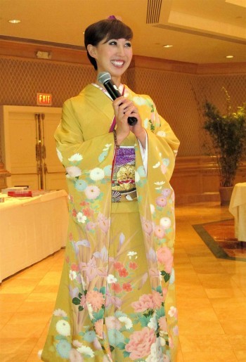 As I walked around the tasting room, I sampled many different sakes and also tasted two delicious sake cocktails made with juices and garnished with orange slices. I was particularly impressed with the enticing, stylish bottling and labels. As is true throughout the Japanese culture, presentation is almost as important as the beverage inside the bottles. Adding to the authentic Japanese atmosphere of the afternoon were the many exquisitely attired and gracious hostesses in their colorful kimonos. And the lovely singing and music being played in the background enhanced the beauty and richness of the tasting experience.