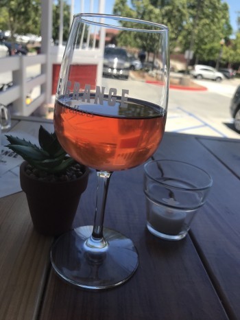 Debbie was quick to point out that as much as possible Le Grange’s cuisine is fresh, locally sourced, and made from scratch. After sampling the lovely Rosé, with summery tastes of watermelon and strawberry, at the far end of the building which is the winery section, we were off to the spacious outdoor patio for lunch. This restaurant is unique because of the abundance of outdoor seating. One of my favorite seating groups is the outdoor grouping of bar stools facing a set of bar stools inside where conversation can be carried on when the window separating outside and inside is open. This area then becomes a table where a large group can eat and visit.