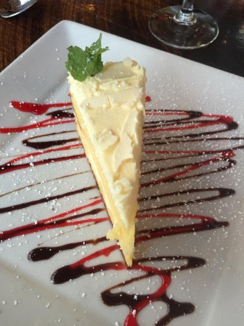 For the main course, my companion chose Rosemary Lemon Chicken Bocconcini (meaning bites), which of course I tasted too. The chicken bites were tender and enhanced by the lemon. I chose the Handcrafted Saffron and Sausage Risotto, which was flavorful and rich, with the piquant saffron highlighting this special dish. I would definitely order this again. We enjoyed these dishes with a chilled, subtly fruity Sauvignon Blanc from New Zealand.