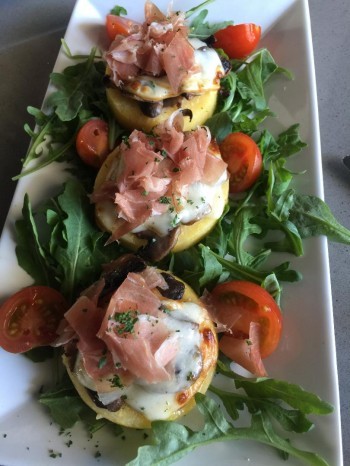 The other Italian restaurant we tried was Osteria Panevino, located in the bustling Gaslamp district. We were served by one of the managers, Giuseppe Gagliano, who was friendly, knowledgeable, and helpful. The vibe here is busy and cheerful with a focus on attentive service. We sat on the streetside patio as the city’s Saturday night activity swirled around us. We ran into some friends so there were four of us, making it fun for us to try a variety of dishes. As we waited to order, we toasted the delightful evening in San Diego with a wonderful Prosecco as we nibbled on freshly baked bread.