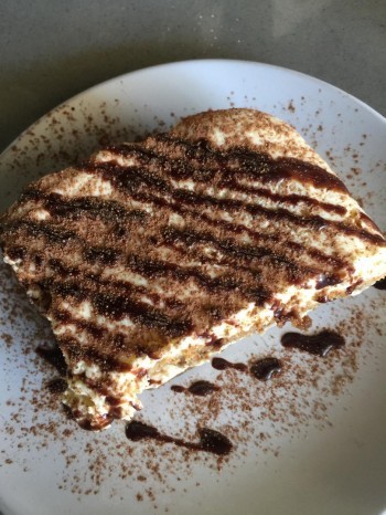 As if we weren’t already full enough, we had to order dessert. Three of us had watched waiters walk by with the limoncello cake and we could not resist ordering this tempting dessert, which Guiseppe paired with a small glass of citrusy limoncello. The cake did not disappoint us. It was light and not too sweet with a fluffy mascarpone frosting.