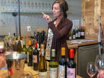 After peeking into some unique shops, we next visited the Wine Lab right next door to Old Vine, where we were amazed at the variety of wines available to taste and purchase. Our tasting room hosts were Edwinn (one of four somms at the Wine Lab) and Kate whose enthusiasm was contagious. They were both knowledgeable and enthusiastic about the wines they served us.