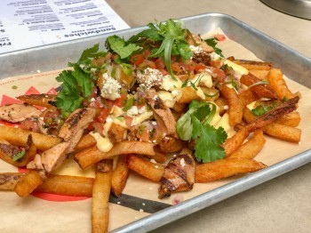 Firebird, a tangy sandwich on a potato roll made with spicy fried thighs, crispy onions, pickles and ranch dressing; and Mexican Poutine, a creative take on traditional poutine, with fries (of course), pico de gallo, pollo asado, and jalapeno cheese.