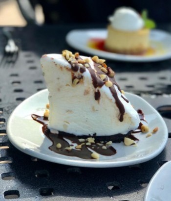 We were totally full after this wonderful meal, but have you heard that we all have a separate stomach for desserts?  So we satisfied these stomachs with the two delectable dessert choices. Todd and Linda raved about the authentic Key Lime Pie custard with a graham cracker crust topped by whipped cream and I was blown away by the Mini “No Ka Oi” which featured macadamia nut ice cream, floating on chocolate sauce and topped by whipped cream.
