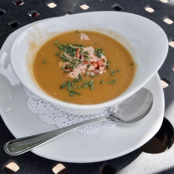 For our first course, we had a choice of Lobster Bisque or Peohe’s Salad. Linda and I enjoyed the luscious Lobster Bisque with chunks of fresh lobster while Todd happily dug into his Peohe’s salad of crispy mixed lettuce, mandarin oranges, and candied walnuts, all nicely dressed with an orange vinaigrette.