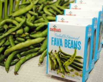 But with Melissa’s packaging, all that work is done for you. After our Melissa’s visit, we sautéed fava beans at home with onion and kale for a delicious dish. Fava beans also add a tasty crunch to salads . . . and how about fava bean soup?