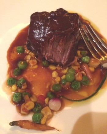 We then enjoyed two main courses. The Brasato, prime beef short ribs with tiny, crunchy vegetables and a savory white salsify (a root vegetable like a parsnip), was Todd’s favorite dish of the evening.