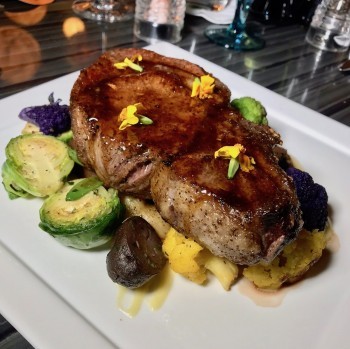 This sea bass, which had been marinating in miso, may be the best I’ve ever tasted. It was so succulent and subtly flavored with a hint of jalapeno pepper. Served with rice, Brussels sprouts and cauliflower, this entrée is outstanding and paired so nicely with the sauvignon blanc.