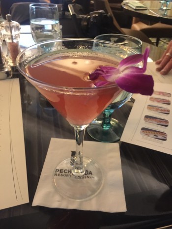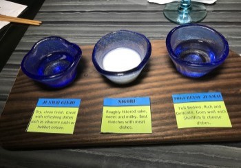 We appreciated the creative cocktail and drink list presented to us on an iPad so we could flip through the pages and consider a variety of tempting, colorful drinks. While my husband, Todd, had a traditional martini, our fellow food writer, Linda, had a refreshing cucumber cilantro drink, and I tried a delicious, imaginative cocktail called a Chimera Martini, made of plum sake and blueberry vodka. Later Linda and I enjoyed a crispy Sauvignon Blanc from Napa and we all shared a sake flight, which went so well with the seafood dishes.