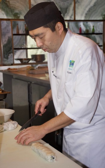 Since we are sushi and seafood lovers, Umi has been a favorite restaurant of ours ever since it opened several years ago. We love Umi because of its innovative, fresh dishes that are so artistically presented. We also especially appreciate the talents of Chef Kiyokuni Ikeda who recently welcomed us to an exquisite dinner at Umi. When we interviewed Chef Ikeda a few years ago, he said his goal was to present the best ingredients simply and creatively and he has done just that. He now heads one of the most exquisite sushi and seafood restaurants—not just in Southern California but in the country.