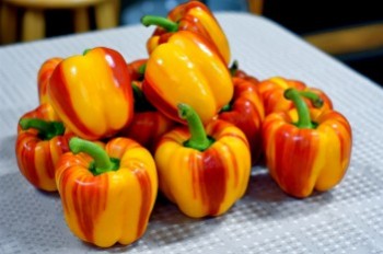 Departing briefly from the topic of fruit, Robert presented a beautiful display of seasonal, colorful red and yellow peppers and gave us a lesson on choosing peppers. Did you know that female peppers have four lobes and are sweeter than male peppers, which have fewer seeds and are less sweet? (I think I’ll buy girl peppers from now on.)