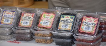 Robert then shared a variety of nicely packaged “superfoods.” These are food items that are more nutritious and have higher levels of antioxidants than other fruits and have not been highly processed. We brought home Cocoa Nibs, Chia Seeds, Aronia Berries, Dried Mulberries, and Goji Berries and have been snacking on them and also sprinkling them on salads and pastas. Besides being good for you, they are tasty and unique.
