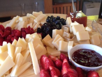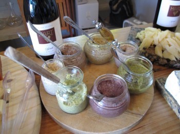 We paired the mustards and cheeses with three excellent wines from Hart Family Winery in Temecula, including Hart’s 2013 Arneis, which is a crispy, dry white with floral aromas and stone fruit tastes. While Hart’s rich fruity reds, 2012 Mourvedre and 2012 Syrah, were also excellent, especially with the more pungent cheeses and spicier mustards, I preferred the refreshing Arneis with most of the cheeses.
