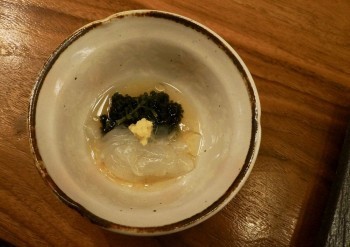 Silver Shrimp from Japan's Toyaba Bay was slightly sweet with the taste of the sea. The freshly grated wasabi added a tangy accent to the mild fish. Chef HIro had shelled these tiny shrimp himself.