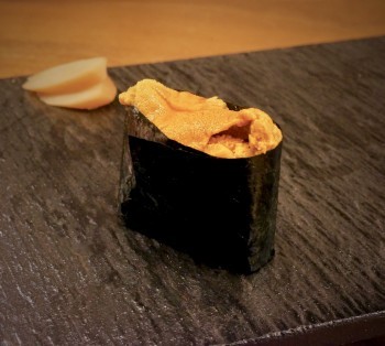 Sea Urchin, also known as Uni, was a special treat served with dried seaweed. We loved its briny, sweet taste, but for some this is an acquired taste (a taste worth acquiring).