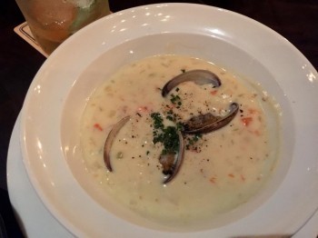 From the four first course selections, we sampled the Farmed New Zealand King Salmon Crudo—slices of fresh salmon accompanied by pink grapefruit, dandelion, and pumpernickel—and the Roasted Beets, featuring sliced beets with pickled pears and goat cheese. We also shared a bowl of the Water Grill's famous clam chowder. While we enjoyed all three appetizers, we would urge you not to miss the clam chowder. Linda grew up digging clams in Washington State and had an aunt who made amazing clam chowder, making Linda a real clam chowder aficionado.  We both thought this was one of the best chowders we had ever tasted.