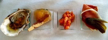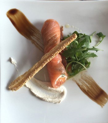 Our lunch began with ribbons of smoked salmon around a creamy center and horseradish emulsion elegantly presented alongside a Chateau La Bouade 2010, a pale golden wine with good acidity and spicy flavors as well as tastes of honey and peach.