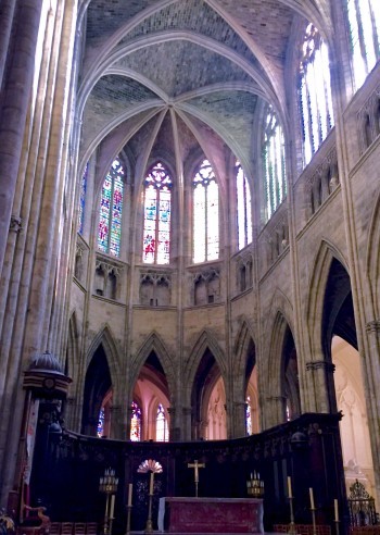 That evening we embarked on a night panoramic bus tour of Bordeaux. The city was awash with lights of many colors showing off the intricate architecture of the buildings, arches, statues, cathedrals, ferris wheels, long shopping alleys and streets, as well as the Ponte de Pierre Bridge (the one with the 17 arches). Bordeaux truly is a beautiful city. As we traveled along the streets of fine shops and restaurants in the inner core, Polene explained that the young people in their 20s to 30s that reside there are called “Bo Beaux.” She said she is a “Bo Beaux.” We all loved the story.