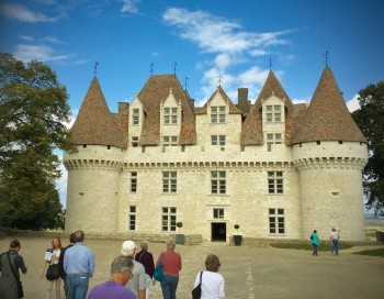 Bergerac wouldn’t be complete without a visit to Chateau de Monbazillac, The Chateau was built in 1550 with four turrets on each corner of the building as well as a moat and battlements. There is a small museum of old wine-related tools, rows of the “liquid gold” of Monbazillac’s famous sweet white wine, and on the main floor, an interesting exhibit in the SEM hall, a room of caricatures of French gentlemen and ladies during the 19th century. On the outside of the chateau, it was easy to imagine days gone by when those in the Chateau could gaze across the miles in the distance to detect approaching invaders.