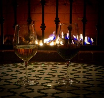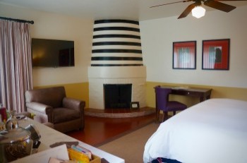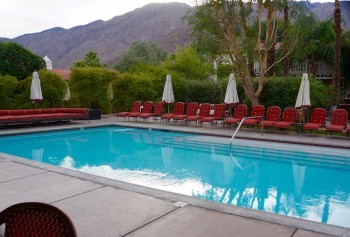 Our room, a deluxe king, was cheerful and inviting, with a beautifully working fireplace, original mosaic tiles, and vibrant fabrics. The two slightly worn and immensely comfortable leather chairs were perfect for leaning back with a drink and watching the flickering flames. (Of course, there was a full bar in our room.) The bed linens were exquisitely soft and comforting. The tiled shower was huge and luxurious. We were also intrigued by the black and white vintage photos accenting our walls and seen all over the property. And the prices at the Colony Palms Hotel are refreshingly reasonable for Palm Springs, with room rates starting at about $169 during the week.