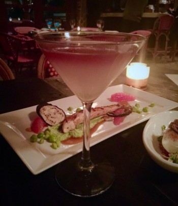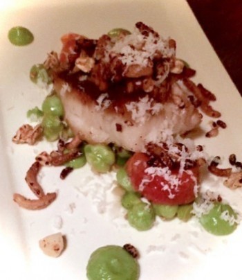 We tasted a variety of Chef Cale’s innovative creations. First we savored perfectly tender and flavorful octopus surrounded by a tasty, unique garbanzo bean pesto and a surprising slice of grapefruit that provided just the right contrast in flavor. It’s hard to prepare octopus that is not rubbery and is still delicious, but Chef Cale has mastered this dish. We also really enjoyed a slightly soft duck egg accented with Fresno chile, black garlic and other spices.