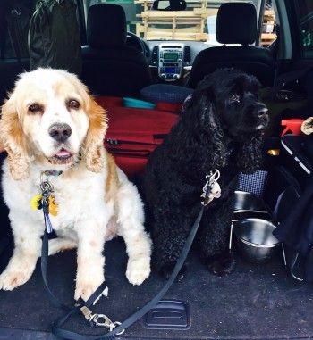 When we told Catie and Chester they were invited on a trip, they happily wagged their tails. They always know that when we get our suitcases out, it probably means they will be left behind. (We can tell because they openly sulk.) But we told them that this time they were going along and they seemed to understand. It must have been the upbeat tones in our voices. Catie even jumped in my suitcase.