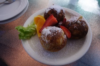 The next morning we visited another restaurant owned by Aaron—the Greenhouse Café, a Nordic Bistro. It was a beautiful, sunny morning in Solvang, as we settled down on a lovely outdoor patio surrounded by flowers with the dogs at our feet. Tracy Farhad, Executive Director of Solvang’s Conference and Visitors Bureau, joined us and shared her contagious passion for Solvang with us. Tracy wisely suggested that we first order "aebleskiver," an authentic Danish pancake ball, made of a special batter, sprinkled with powdered sugar, and served with raspberry jam.
