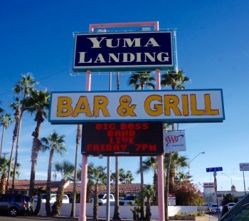The Yuma Landing Bar and Grill is one of our favorite spots in Yuma. Since it is part of the historic Coronado Motor Hotel where we stayed during both trips to Yuma, we are happily familiar with the restaurant’s extensive menu. Breakfast is included for hotel guests and we loved the bountiful, appealing breakfast menu with everything from design-your-own omelets to eggs benedict, French toast and pancakes. For lunch or dinner, you’ll find a full menu of appetizers, salads, sandwiches, steaks and pasta dishes— all delicious. The adjacent Captain’s Lounge is the perfect setting to relax after a day of sightseeing. While sipping a handcrafted cocktail, you can peruse a fascinating display of historic photos depicting Yuma’s rich aviation history. You’ll discover that in 1911 the first plane to ever land in the state of Arizona did so right where this restaurant stands, as memorialized by a statue of the pilot, Robert Fowler, which stands in front of the restaurant today.