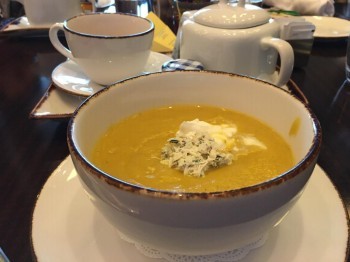 The creative menu at the Lobby Bar & Grill features American cuisine with an International flair and the restaurant sources food locally. I began my meal with a luscious butternut squash soup crowned with sherry crema.