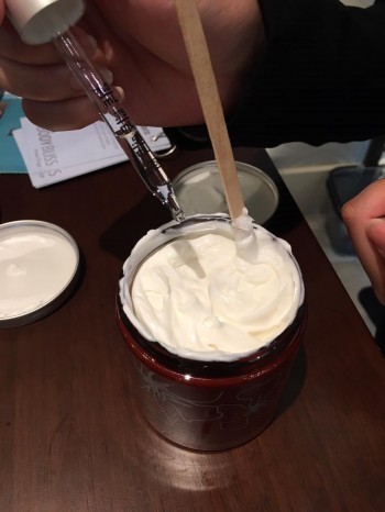 Our group was excited to participate in customizing aromatherapy body butter cream. For a fee of $18, you get an 8-oz. jar of Body Bliss Rich Shea Butter, and the helpful services of a congenial staff (thank you Ashley and Stefan) that walks you through selecting and combining fragrances that you stir into the cream to create your very own signature aromatic body cream. You can choose your favorite fragrances or check out the aroma recipes using Numerology’s Life Path Numbers, which are calculated from your birthdate. My birthday is in July and my number is 8. Birthyear 8 is defined as a powerhouse striving for balance, and the recipe has drops of cedar, orange, frankincense, and clove. It was a fun and unique experience for me.