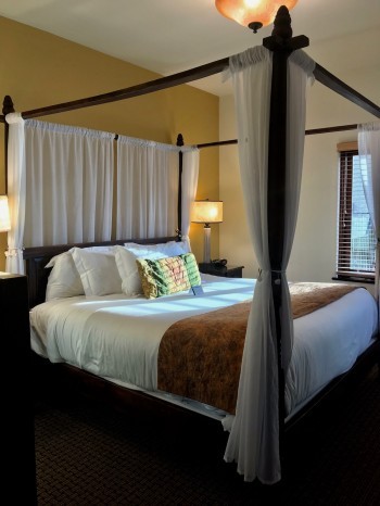 We loved the sounds of waterfalls as we meandered around the inn’s pleasant hibiscus-filled courtyard and sipped wine while we watched a glorious sunset over the cove. We stayed in a beautifully decorated, two-bedroom suite with a fireplace and views of the ocean. My bed was just about the most comfortable I’ve ever experienced and I loved the shower made of custom stone tile. Every amenity we desired was provided from coffee maker, snacks, and bottled water, to beer and wine available for purchase. A delectable desert tray awaited us and can be purchased in advance of your stay.