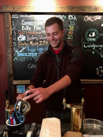 This craft brewery offers an ever-changing variety of local craft beers in a snug, welcoming setting. We sidled up to the bar and enjoyed chatting with the friendly “beer”tender. At his suggestion, we sampled a flight of exclusive, small-batch beers. We savored the unique flavors of the Elwah Rock IPA and the more mellow K-Pod Kolsch. I could just imagine spending the afternoon here chatting with the locals and soaking up the ambiance. An outdoor patio is also very appealing. And the cheese dip goes perfectly with the beers.