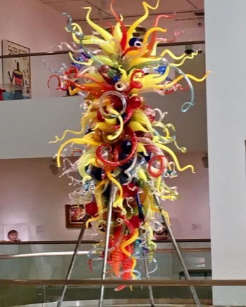 The Palm Springs Art Museum was designed by renowned architect E. Stewart Williams and has over 50,000 pieces of art in its Americas and 20th Century California Art permanent collection, including Native American woven baskets, pre-Colombian ceramics, photographs by Ansel Adams and Andy Warhol, glass sculpture by Dale Chihuly (photo right), and furniture by Frank Gehry. The Palm Springs Art Museum Architecture and Design Center , also designed by E. Stewart Williams, displays mid-century architectural drawings, blueprints, photos, and scaled models.