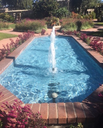 Displayed throughout the gardens are sculptures, fountains, and seasonal flowers. The Central Garden fountain and pool showcases a recurrent plant display, based on the season. Adjacent to the fountain, in this enchanting floral setting, is the aptly named restaurant, Café Jardin. In French, “jardin” translates to “garden” and it is in this tranquil environment that award-winning Orange County Chef Pascal Olhats has created a harmonious synthesis of French cuisine with fresh California provisions.