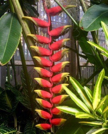 Our informative docent guided us through the gardens, which encompass just over two acres. We saw a horticulture wonder with plant-scapes representing geographical areas from all over the world, with vegetation from climates of the desert, the tropics, and the Mediterranean. We began our tour by entering the Tropical Conservatory, a sheltered area that included a beautiful koi pond and carnivorous plants. It was interesting to note that these predatory plants evolved from a nutrient-deprived environment and developed various methods to catch insects; some plants have snap traps or sucking traps, and some plants have a sticky substance on them that snares their prey. The Tropical Conservatory also includes an array of beautiful fragrant orchids, a variety of flowering ginger plants, and clusters of striking red heliconia, nicknamed lobster claws because of their appearance.