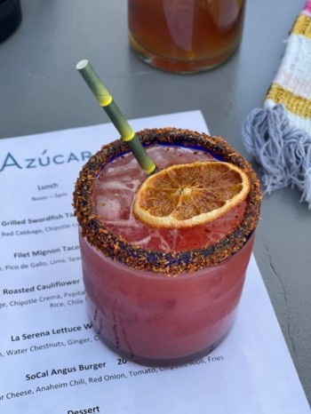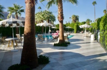 By the way, while we were in Palm Springs we had a delightful lunch with a friend at another PSPSH property, La Serena Villas, where the much celebrated restaurant, Azúcar, is located. We dined on delicious swordfish tacos, scrumptious chicken lettuce wraps, and a shrimp cocktail while we sipped the restaurant’s special margarita called the Rosearita, which is made with tequila, rose liqueur, and agave nectar. Azúcar’s outdoor patio setting around the La Serena Villas pool captures the quintessential relaxing spirit of Palm Springs. Our friendly restaurant server even brought Fender a bowl of water. We’ve learned that dogs are generally very welcome in Palm Springs.